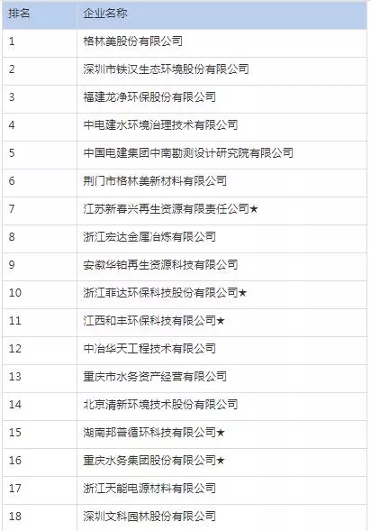 统计数据显示,2017年度环境服务业从业企业(执行企业会计制度)营业收入(按企业全部营业收入额计)排名Top30名单如下: