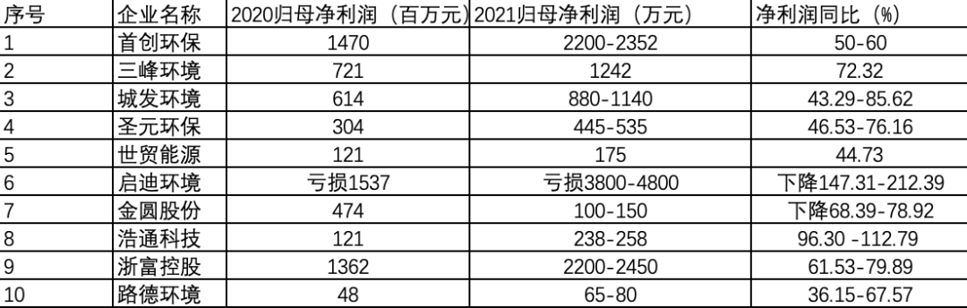 前段时间小编统计过10家环保上市企业2021年业绩预告,其中90%行业头部企业营收净利润都呈现增长的趋势。